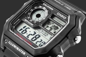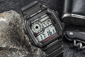 Zegarek Męski CASIO AE-1200WH-1AVDFCasio AE-1200WH-1AVDF to męski zegarek cyfrowy z kultowej serii Casio Collection, który w wyjątkowy sposób łączy wojskowy styl i retrodesign z nowoczesną technologią. Solidna koperta z tworzywa sztucznego, szkiełko haselitowe oraz wytrzymały pasek z tworzywa sztucznego tworzą lekką, a zarazem niezwykle wygodną konstrukcję, idealną na co dzień i w podróży. Ciemnozielona kolorystyka z czarnymi akcentami i prostokątna tarcza LCD z mapą świata nadają zegarkowi charakterystyczny, przygodowy wygląd inspirowany stylem vintage. Model wyposażono w funkcję czasu światowego (World Time), pięć alarmów dziennych, stoper 1/100 sekundy, timer odliczania, automatyczny kalendarz oraz podświetlenie LED z regulacją czasu świecenia. Zasilany baterią o żywotności do 10 lat, oferuje również wodoszczelność 100 metrów, dzięki czemu doskonale sprawdzi się zarówno w miejskiej dżungli, jak i w terenie. Casio to zegarek dla mężczyzn, którzy cenią niezawodność, funkcjonalność i ponadczasowy design z nutą przygody. Opis produktu:Marka: CASIOSymbol: AE-1200WH-1AVDFMechanizm: KwarcowyTarcza: Cyfrowa LCDSzkiełko: HesalitowePasek: Tworzywo sztuczneWodoszczelność: WR 100 MAntyalergiczny: Tak - nie zawiera niklu Wymiary w mm:Koperta: 42/44Tarcza: 30/27Grubość: 12Pasek szerokość: 24/18Obwód: 150 - 220 Kolorystyka:Koperta: czarnaTarcza: czarno szaraWskazówki: czarneSekundnik: czarnyPasek: czarny MECHANIZM KWARCOWY - dokładność i niezawodnośćJest to niezawodny mechanizm stosowany w klasycznych zegarkach cyfrowych Casio, który łączy funkcjonalność z długą żywotnością baterii. Wymiana baterii to jedyna regularna czynność, którą należy wykonywać podczas użytkowania kwarcowego zegarka. To idealny wybór dla aktywnych osób, które cenią sobie komfort i prostotę w działaniu zegarka. SZKIEŁKO HESALITOWE – TRADYCJA I PONADCZASOWY STYL.”Szkiełko hesalitowe to klasyczny wybór, który dodaje zegarkowi wyjątkowego charakteru – jego ciepły, lekko zaokrąglony wygląd nadaje tarczy szlachetnej głębi, a jednocześnie jest niezwykle praktyczne, bo ewentualne drobne zarysowania można łatwo wypolerować, przywracając mu świeży wygląd. To rozwiązanie cenione przez kolekcjonerów i pasjonatów zegarków, którzy doceniają tradycję, autentyczność i ponadczasowy styl.WODOODPORNOŚĆ 10 ATM / 100M - WIĘKSZA ODPORNOŚĆ NA WODĘCzasomierz jest odporny na deszcz, wilgoć, zachlapania podczas mycia rąk czy krótkotrwały kontakt z wodą a nawet kąpiel bez zanurzania. Dzięki szczelnej kopercie oraz mineralnemu szkłu mechanizm pozostaje bezpieczny, a tarcza zachowuje elegancki wygląd przez długi czas. Warto jednak pamiętać, że poziom 10 ATM nie jest przeznaczony do skakania do wody czy nurkowania. To idealny kompromis między stylem, funkcjonalnością i codzienną wygodą. FUNKCJONALNOŚĆ TWOJEGO ZEGARKACasio AE-1200WH-1AVDF to wielofunkcyjny zegarek cyfrowy z wyświetlaczem LCD, zaprojektowany z myślą o osobach ceniących niezawodność, funkcjonalność i styl retro. Wyposażony jest w funkcję czasu światowego (World Time) z mapą świata i możliwością szybkiego przełączania między czterema zapisanymi strefami czasowymi, pięć niezależnych alarmów dziennych, sygnał pełnej godziny, stoper 1/100 sekundy działający do 24 godzin z funkcją międzyczasu (split time), timer odliczający od 1 sekundy do 24 godzin, automatyczny kalendarz uwzględniający lata przestępne, a także format wyświetlania 12/24 godziny. Dodatkowo posiada funkcję wyciszenia dźwięków przycisków, możliwość ustawienia czasu letniego (DST), podświetlenie LED z regulowanym czasem świecenia (1,5 lub 3 sekundy), tryb podwójnego czasu (Dual Time) oraz wskaźnik AM/PM. Zegarek jest zasilany baterią o żywotności do 10 lat, a jego wodoszczelność na poziomie 100 metrów (10 BAR) umożliwia bezpieczne użytkowanie podczas kontaktu z wodą i codziennych aktywności. MOCNY I TRWAŁY PASEK Z TWORZYWAPasek z tworzywa to doskonałe rozwiązanie dla osób, które cenią sobie wygodę i funkcjonalność w codziennym użytkowaniu zegarka. Mocny a zarazem miękki, elastyczny materiał idealnie dopasowuje się do nadgarstka, zapewniając komfort noszenia przez cały dzień – niezależnie od sytuacji. Pasek jest lekki, przyjemny w dotyku i odporny na działanie wody, potu czy zmiennych warunków pogodowych, dzięki czemu pasek zachowuje swój wygląd i właściwości przez długi czas. To idealny wybór dla osób aktywnych, które potrzebują praktycznego, a jednocześnie stylowego dodatku. Pasek silikonowy łączy w sobie trwałość, nowoczesny wygląd i maksymalną wygodę użytkowania. ZESTAW ZAWIERA:Oryginalny zegarek marki CASIOFirmowe pudełko CASIO Kartę gwarancyjną z instrukcją obsługi ZEGAREK CASIO - CZAS W NAJLEPSZYM WYDANIUDzięki wyjątkowej dbałości o detale i rygorystycznym testom wytrzymałościowym, Casio oferuje czasomierze, które zyskały miano "zegarków na pokolenia". To marka, której zaufały miliony ludzi na całym świecie, od globtroterów, przez sportowców, aż po osoby poszukujące codziennej elegancji. Casio to nie tylko zegarek – to trwałość, innowacja i historia wpisana w każdą sekundę.