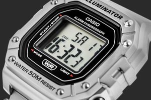 Zegarek Męski CASIO W-218HD-1AVDFCasio W-218HD-1AVDF to esencja klasycznego stylu Casio w nowoczesnym, sportowym wydaniu: wyrazisty, prostokątny wyświetlacz LCD w solidnej kopercie, czytelny na pierwszy rzut oka, z subtelnymi akcentami, które dodają mu świeżości i uniwersalności. Zegarek został stworzony do codziennego tempa: wodoszczelność 50 m, podświetlenie LED dla pewnego odczytu po zmroku, 7-letnia bateria dla długiej niezawodności, a także praktyczny zestaw funkcji – stoper 1/100 s (do 60 min), alarm dzienny i sygnał pełnej godziny, automatyczny kalendarz oraz format 12/24 h. Lekki i wygodny, z szkiełkiem z tworzywa (Resin Glass) i wytrzymałą bransoletą, świetnie sprawdzi się zarówno na treningu, jak i w codziennych stylizacjach. Jeśli szukasz bezkompromisowej prostoty połączonej z legendarną trwałością Casio, będzie strzałem w dziesiątkę.DANE TECHNICZNE:Marka: CASIOModel: W-218HD-1AVDFMechanizm: Precyzyjny kwarcowy zasilany bateriąTarcza: Cyfrowa tarcza LCD - czytelna i funkcjonalnaKoperta: Materiał żywiczny ResinSzkiełko: Żywiczne szkiełko Resin Glass HaselitoweBransoleta: Stal szlachetnaStandardowe funkcje: godzina, minuta, sekunda, pm, data, dzień tygodniaDodatkowe funkcje: stoper 1/100 sekundy / alarm / sygnał godzinowy / automatyczny kalendarz / czas 12/24 godzinyPodświetlenie: LED amber / bursztynowyWodoszczelność: WR (Water Resistant)Antyalergiczny: Tak - nie zawiera nikluŻywotność baterii: 7-letnia (7-year battery life) WYMIARY w mm:Koperta: 44 x 43 mmTarcza: 30 x 27 mmGrubość: 11 mmBransoleta: szerokość 22/18 mmObwód: max. 215 mm KOLORYSTYKA:Koperta: srebrnaTarcza: czarno szaraKolor cyfr: czarnyPodświetlenie led: bursztynoweBransoleta: srebrna MECHANIZM KWARCOWY - dokładność i niezawodnośćJest to niezawodny mechanizm stosowany w klasycznych zegarkach cyfrowych Casio, który łączy funkcjonalność z długą żywotnością baterii. Wymiana baterii to jedyna regularna czynność, którą należy wykonywać podczas użytkowania kwarcowego zegarka. To idealny wybór dla aktywnych osób, które cenią sobie komfort i prostotę w działaniu zegarka. CZYTELNA TARCZA Z PODŚWIETLENIEM Czytelny wyświetlacz LCD zapewnia łatwy odczyt godziny w formacie 12- lub 24-godzinnym, a jego układ jest intuicyjny i funkcjonalny. Górna część ekranu wyświetla informacje o dniu tygodnia, alarmie oraz funkcjach dodatkowych, natomiast dolna wskazuje aktualny czas. Zegarek jest wyposażony w podświetlenie LED, które pozwala na odczyt godziny w warunkach słabego oświetlenia. SZKIEŁKO RESINOWE Resin Glass - OPTYMALNA OCHRONA ORAZ CZYTELNA TARCZAWykonane z wyjątkowo lekkiego i wytrzymałego materiały żywicznego. Dzięki elastyczności żywicy, materiał ten lepiej radzi sobie z wstrząsami i upadkami w porównaniu do tradycyjnego szkła. Dodatkowo zapewnia doskonałą przejrzystość oraz jasność, co znacząco ułatwia szybki i wyraźny odczyt godziny w różnych warunkach oświetleniowych. STOPERWbudowany stoper umożliwia dokładne mierzenie czasu w zakresie do 1/100 sekundy, co jest szczególnie przydatne podczas ćwiczeń lub innych aktywności wymagających precyzyjnego pomiaru czasu.WIELOFUNKCYJNY ALARM Zegarek posiada funkcję alarmu, która pozwala na ustawienie jednego codziennego przypomnienia. Jest to przydatna funkcja, jeśli potrzebujesz powiadomienia o określonej porze dnia.KALENDARZ AUTOMATYCZNY Zegarek posiada funkcję kalendarza, która automatycznie dostosowuje się do długości miesięcy, co eliminuje konieczność ręcznego przestawiania daty. Jednak ten model nie oferuje szczegółowego kalendarza (np. kalendarza rocznego), ale poprawnie wyświetla dzień i miesiąc. 12/24-GODZINNY FORMAT CZASUUżytkownik ma możliwość wyboru między wyświetlaniem czasu w formacie 12-godzinnym lub 24-godzinnym, w zależności od swoich preferencji. WODOSZCZELNOŚĆ WATER RESISTZegarek jest wodoodporny na poziomie WR, co oznacza ochronę przed zachlapaniami, ale nie jest przeznaczony do pływania. Taki zegarek jest wystarczająco odporny na wodę, aby sprostać wielu typowym sytuacjom, które mogą się zdarzyć na co dzień: np. nagłe opady deszczu czy kontakt z wodą podczas mycia rąk. MOC I TRWAŁOŚĆ BRANSOLETYWykonana z doskonałej stali nierdzewnej, która łączy trwałość z luksusowym wykończeniem Jej solidna konstrukcja to nie tylko gwarancja niezawodności, ale także pewność, że zegarek będzie leżeć idealnie, niezależnie od tego, co przyniesie dzień. Precyzyjne zapięcie z wytłoczonym logo dopełnia całości, dodając nutę klasy i wyjątkowego charakteru. To bransoleta, która mówi "siła" i "styl" jednym, zdecydowanym ruchem. ZESTAW ZAWIERA: Oryginalny zegarek marki CasioOryginalne pudełko CASIO – idealne na prezentKarta gwarancyjna – Instrukcja obsługi ZEGAREK CASIO - CZAS W NAJLEPSZYM WYDANIUDzięki wyjątkowej dbałości o detale i rygorystycznym testom wytrzymałościowym, Casio oferuje czasomierze, które zyskały miano "zegarków na pokolenia". To marka, której zaufały miliony ludzi na całym świecie, od globtroterów, przez sportowców, aż po osoby poszukujące codziennej elegancji. Casio to nie tylko zegarek – to trwałość, innowacja i historia wpisana w każdą sekundę.